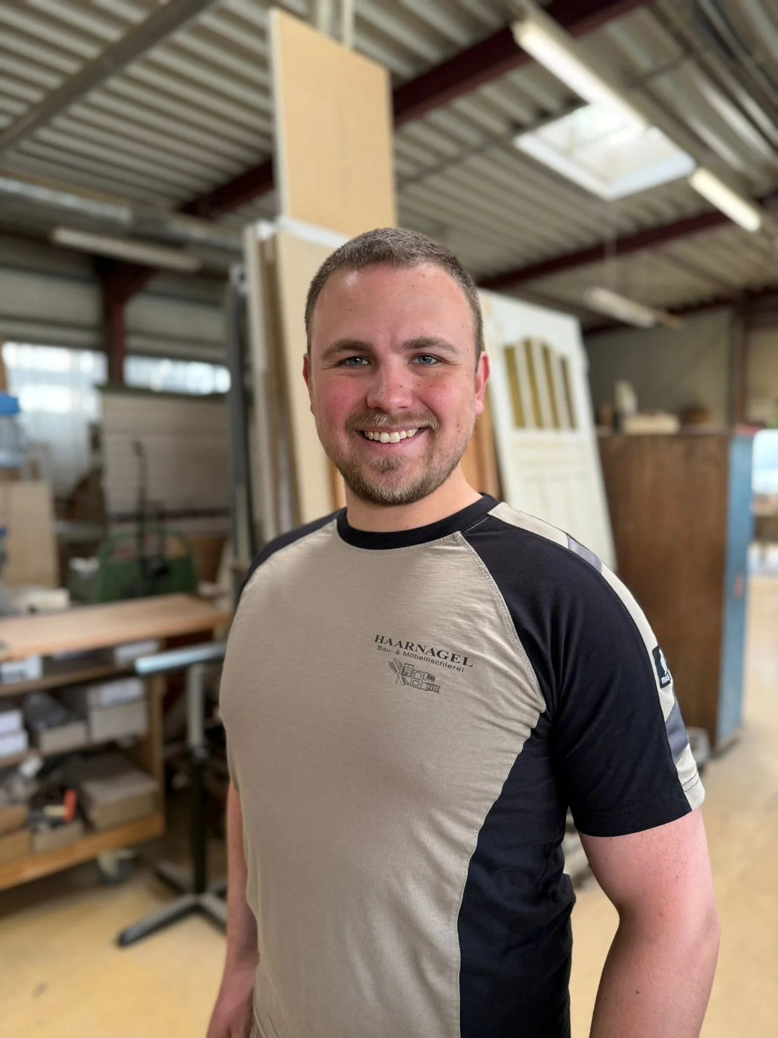 Jan Gehlhar beginnt 2019 seine Ausbildung bei der Tischlerei Haarnagel und bleibt dem Unternehmen treu, indem er nach dem erfolgreichem Abschluss auch seine Meisterzeit dort verbringt. Mit seiner Unterstützung soll die Firma weiter gestärkt werden.
